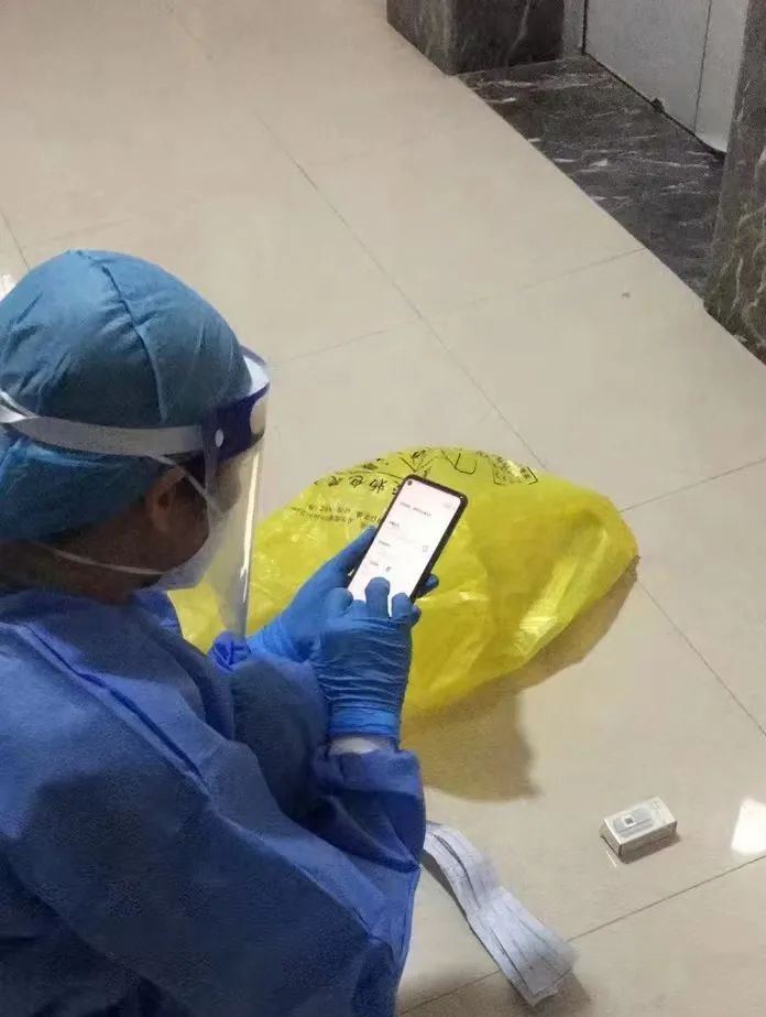 周珊妮老師,一位年輕的90后,跟隨三人小組入戶,從晚上10:00開始,到凌晨4:30,歷時6個半小時走訪,是當晚走訪任務最重的一個組。由于天氣太熱,穿著厚實的防護服,周珊妮老師差點暈倒在走訪入戶的路上。但她沒有放棄,稍作休息后,繼續和大隊一起堅持完成任務。