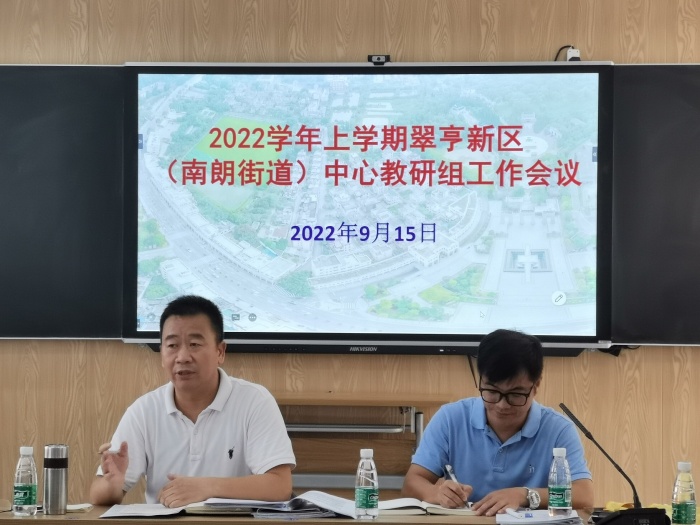 奮斗成就夢想。對于教育工作者而言,九月是一個新的征程。為反思和提高教育發展成果,扎實有序推進新學期的教學教研工作,9月15日下午,翠亨新區(南朗街道)教育和體育事務中心在云衢小學會議室分別召開了南朗街道2022—2023學年(第一學期)教學工作會議、南朗街道中心教研組教研工作會議,教育和體育事務中心黃嘉宏副主任、嚴志文老師以及街道各中小學教學行政及各學科中心教研組長參加了會議。
