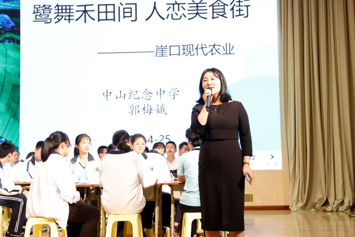為促進初中地理新課標課例開發,探討未來課堂教學,深化初中地理課堂改革,4月25日上午,中山市初中地理新課程標準課例實踐暨未來課堂教學研討會在中山紀念中學順利舉行。紀念中學初中黨支部書記、中學地理高級教師鮑瑩主任、教務處龔瑾主任、林森主任,德育處鄧健凡主任及中山市全體地理教師約300人參加了研討會。會議由中山市教育教學研究室地理教研員、中學地理正高級教師官山明老師主持。研討會分為公開課展示和點評研討兩個環節。公開課展示環節由中山紀念中學郭梅娥老師和坦洲中學周欣老師根據新課標的理念和要求,以同課異構形式,以鄉村振興為主題,以區域+產業為主線進行了課堂設計,開展了以培養學生綜合思維、創新思維和開放思維的課堂教學。鮑瑩主任和官山明教師對兩位老師的課堂設計和教學思路進行了精彩的點評。