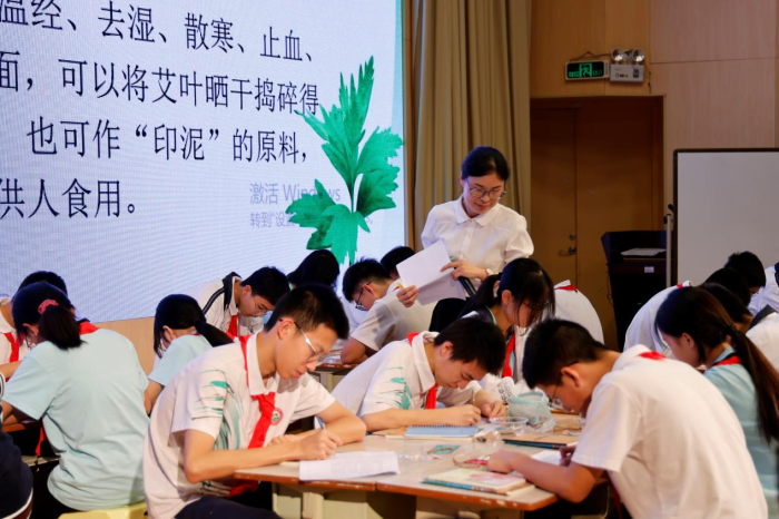 郭梅娥老師的課題為《鷺舞禾田間 人戀美食街——崖口現代農業》,以探討崖口村的鄉村振興為主題,從“有什么”—“靠什么”—“為什么”—“怎么樣”四個角度以項目式學習的形式,帶領同學們分析崖口村的區位條件,尋找最適合崖口村的產業類型,總結出崖口鄉村振興的措施。最后,郭老師讓同學們制作宣傳畫,為崖口代言,激發同學們對家鄉的熱愛情懷與自豪情感。坦洲中學周欣老師以《為“艾”代言,助力鄉村振興——探究影響農業生產布局的因素》為題,先從艾草的價值、生長習性等方面了解艾草,歸納出影響農業生產的自然因素。隨后,通過介紹中國“艾都”蘄春縣的蘄艾發展之路,歸納出影響農業生產的社會經濟因素。最后,周老師讓同學們在課堂上縫制艾草香囊,培養學生的勞動實踐能力,并帶領同學們結合蘄春縣艾草企業的做法,提出艾草香囊的銷售策略,助力鄉村振興。