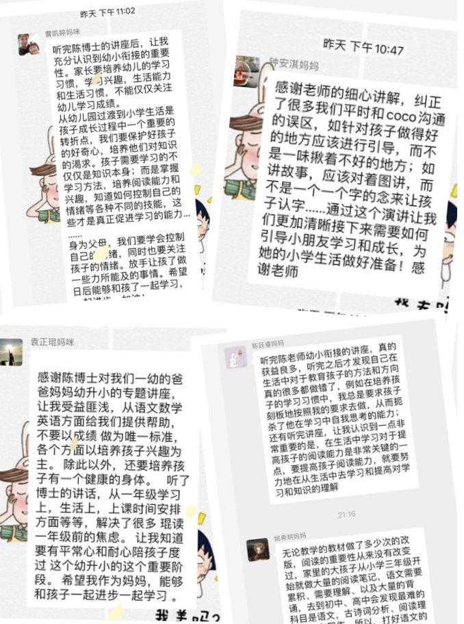 會后,家長們紛紛發布學習感言,表示陳博士的分享為他們指明了幼小銜接家庭教育的方向,也糾正了她們一些不正確的觀念,消除了焦慮。