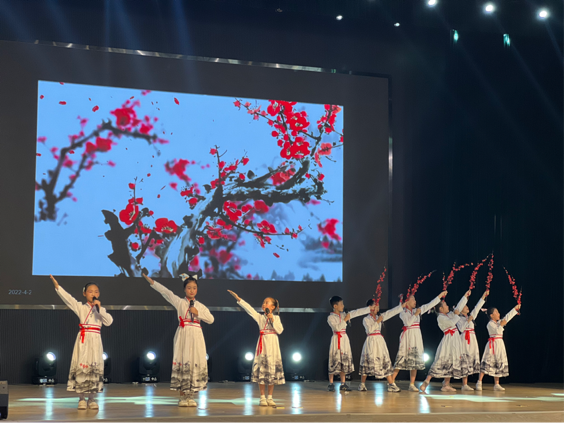 悠悠書香促成長,一二三年級學生通過吟誦《梅花夢》《雪月梅花》《梅花頌》《梅花吟》等一首首經典詩詞,稚嫩童聲,聲聲入耳,句句繞梁,跨歷史長河,越千年歲月,賞音律之美,悟梅花精神,養君子之風。
