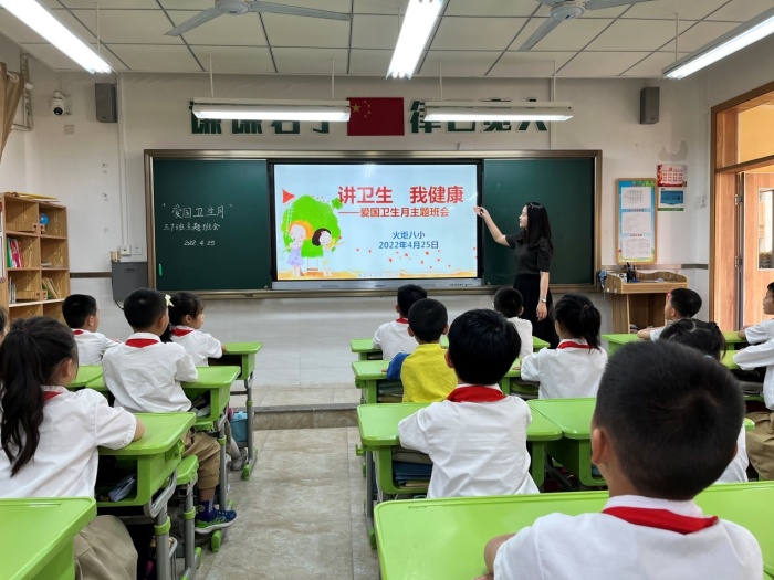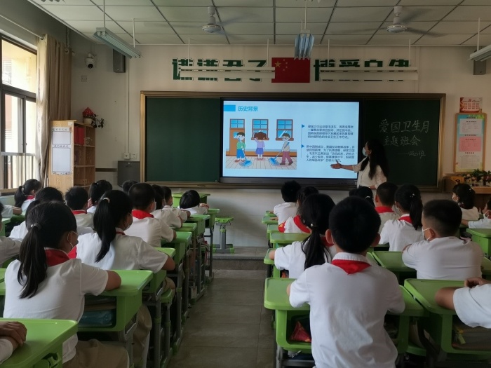 4月25日,學校還組織各中隊開展 “講衛生 我健康” 愛國衛生月主題班會。在班會課上,各中隊輔導員結合當下疫情防控要求,向同學們介紹了愛國衛生運動的由來,闡述了為什么要做好環境衛生、怎樣做好個人衛生與班級室內外衛生等問題,引導同學們從日常的生活和行為習慣做起,講文明,講衛生。老師組織同學們認真學習,倡導同學們進行宣傳,讓愛國衛生月活動深入到每個家庭,做到家喻戶曉,共同參與。