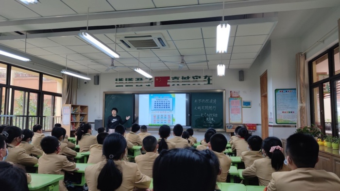 在疫情防控宣傳教育課上,鄧龍主任利用學校紅領巾電視臺向全校直播,他圍繞當前疫情防控形勢、變異毒株特點、學生個人防控須知、疫情防控相關法律法規、學校疫情防控具體要求等方面開展疫情防控知識宣傳教育。提醒學生時刻警惕新冠肺炎的十大癥狀,一旦出現發熱、干咳、乏力、嗅覺味覺減退、鼻塞、流涕、咽痛、結膜炎、肌痛、腹瀉等癥狀,要做好防護,及時就近前往醫療機構發熱門診就診,如實告知自己的可疑接觸史,就醫途中全程佩戴口罩,避免乘坐公共交通工具;引導學生戴口罩,勤洗手,不信謠,不傳謠,不扎堆,不聚餐,勿恐慌,堅持做好個人防護和健康檢測;堅持家庭、校園“兩點一線”,自覺遵守學校常態化疫情防控期間的各項管理規定;如非必要,不出市跨縣,更不要去中高風險地區,涉疫地區來返中山的人員一定要提前主動向學校及所在社區報告。