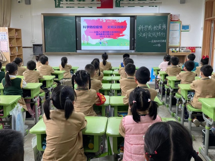 近期全國疫情呈現多地散點突發,為保障學生的身心健康和校園教育教學工作有序進行,最大限度降低傳播風險,引導同學們科學面對疫情,增強自我保護,提高防范意識。3月31日下午,火炬八小組織各班開展疫情防控宣傳教育課。