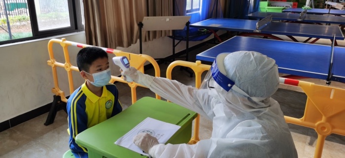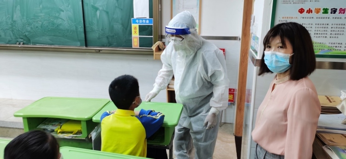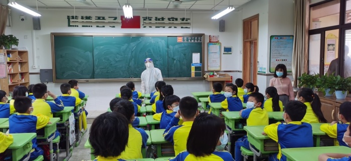 隨后,根據市級疫情防控指揮部指示,學校啟動封閉校園管理,校外人員、車輛未經審批不得進校。停止校園群體性聚集活動。物業管理公司負責人加強校門口警戒,接應衛生健康部門專業人員到場。其他班級原地防護。校長立即召集火炬八小新型冠狀病毒感染的肺炎疫情防控工作領導小組開通線上會議,相關人員分五個小組布置工作。宣傳和心理疏導組通知所有教職員工、學生不要隨意走動,盡量保持在原位待進一步的安排。所有校內全體人員帶好口罩,做好個人防護。