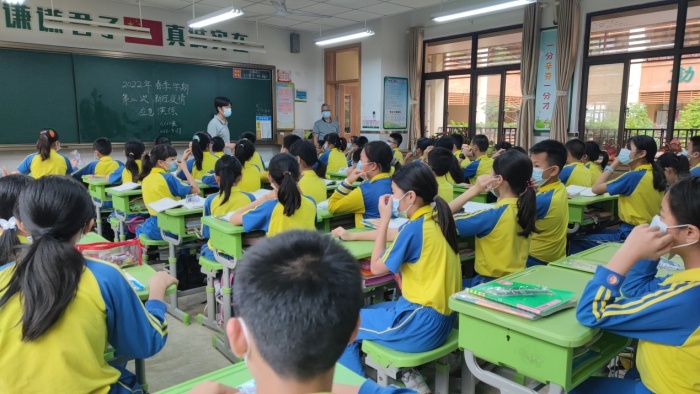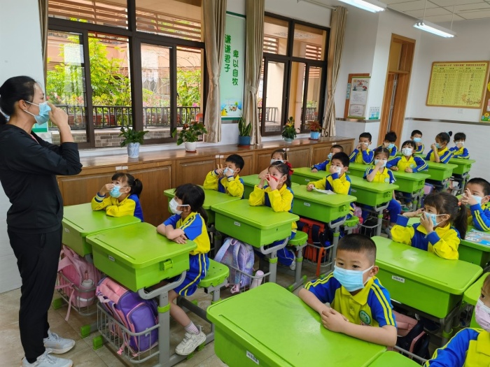 本次演練的內容主要分為三個方面:轉運病例到留觀室、封閉校園、班級原地防護,演練的場景內容是轄區衛生健康部門工作人員致電學校校長唐從彥,告知該校學生甲是新冠肺炎病例的密切接觸者,經確認,學生為五(1)班學生,正在課室,班主任吳孔燕老師正在該班上課。