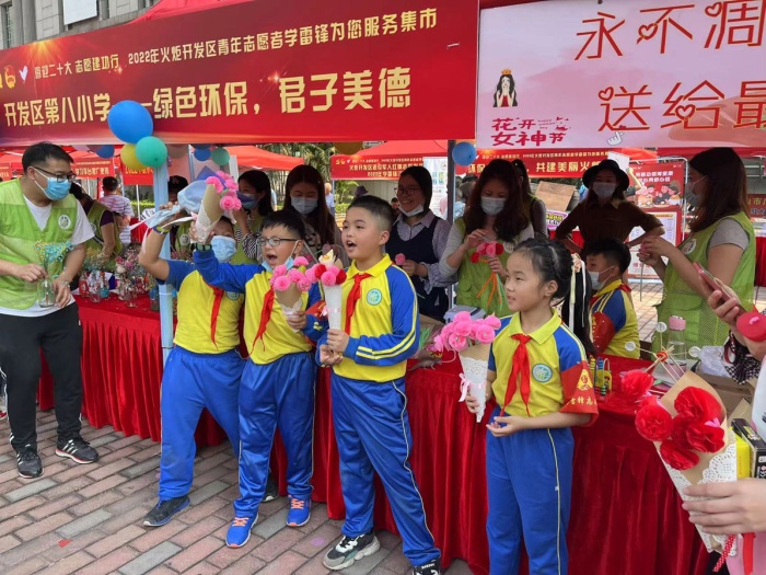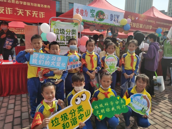 春暖三月學雷鋒,綠色環保我先行,為了更好地在校園內外開展綠色環保教育,引導學生樹立低碳生活理念,弘揚節能環保、愛護地球的行為習慣,2022年3月6日下午,火炬第八小學親子義工服務隊在火炬開發區太陽城參加由區團工委、青年志愿者協會聯合舉辦的2022年“火炬青年志愿者學雷鋒為您服務”集市活動。