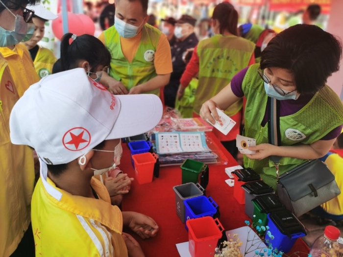 在活動現場,小小志愿者們利用綠色環保宣傳海報和環保廣告手卡向市民群眾宣講“垃圾分類”知識,并組織開展“垃圾分類知多少”有獎小游戲,倡導大家從日常生活入手,爭當垃圾分類的環保宣傳者、參與者。此項活動吸引了眾多的參與者,他們躍躍欲試,把手中的垃圾卡投進相應的垃圾分類模型中,全部正確即可獲得獎品一份。