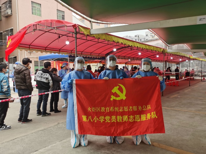 剛剛過去的2022年春節(jié)寒假,注定是不平凡的一個(gè)假期。學(xué)校接到了上級(jí)部門的緊急通知,要求派出教師志愿者到各個(gè)核算監(jiān)測點(diǎn)進(jìn)行行動(dòng)支援。接到任務(wù)后,學(xué)校迅速行動(dòng)起來,發(fā)動(dòng)全校黨員和教師進(jìn)行報(bào)名活動(dòng)。此次活動(dòng)獲得了老師們的大力支持,他們紛紛表示:防范疫情,人人有責(zé),哪里需要我,我就到哪里去!1月17日上午,黨支部書記唐從彥校長帶領(lǐng)全體行政和部分教師共7人來到了檢測點(diǎn),成為了第一批志愿者,從2月7日—2月12日,火炬八小又分別派出了志愿者教師二十余人人,積極參與到疫情防控工作中來。