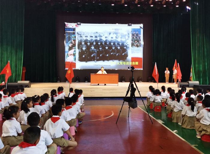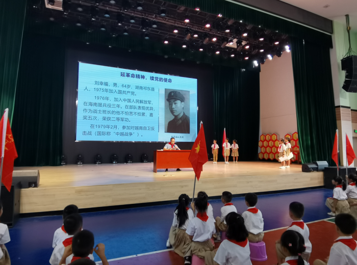當劉幸福同志來到隊員們中間,隊員們激動地為其戴上了紅領巾,并以最崇高的隊禮向劉爺爺表示致敬。劉幸福同志向少先隊員們講述了當年那個炮火硝煙的年代,解放軍戰士舍小家為大家,義無反顧投奔戰場最前線,紛紛向黨組織申請到最艱難最危險的地方去。劉幸福同志表示,作為一名共產黨員,要不斷秉持為民初心,堅持道路自信,永葆奮斗意志和姿態,為祖國第二個百年奮斗目標,繼續貢獻自己的一份力量!劉幸福同志激情昂揚的話語深深感染了現場的每一名師生,掌聲久久回蕩在會場中。最后,劉幸福同志寄語八小少先隊員們,要珍惜如今的幸福生活,刻苦學習文化知識,努力鍛煉身體,積極參加校內外各種公益活動,成長為擔當民族復興大任的時代新人。
