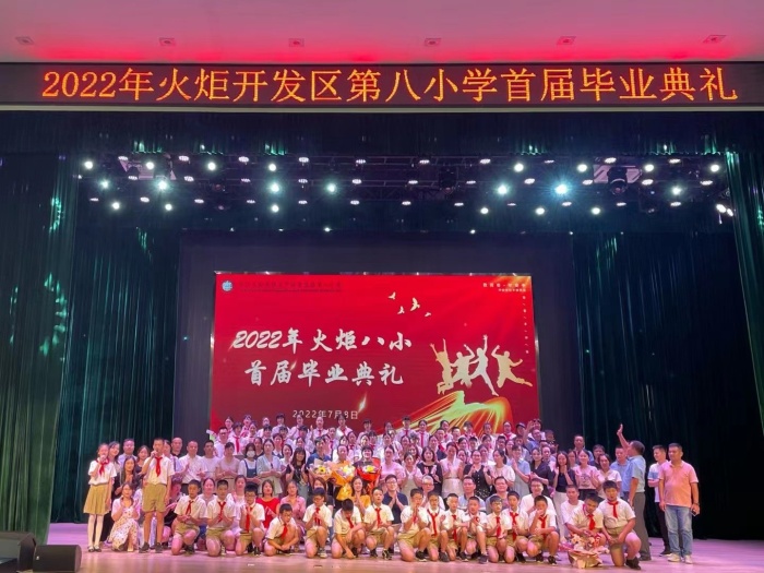 青青校樹,萋萋庭草,欣沾化雨如膏;謙謙君子,誨我諄諄,今朝揚帆逐夢。七月,帶來了夏季的燥熱,也帶來了學成圓滿、開啟人生新篇章的欣喜。7月8日下午,火炬第八小學在學校體育館隆重舉行了首屆畢業典禮。學校領導、六年級全體師生、家長代表齊聚一堂,一同見證這一獨具意義的時刻。