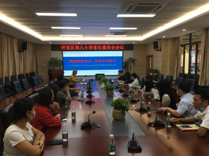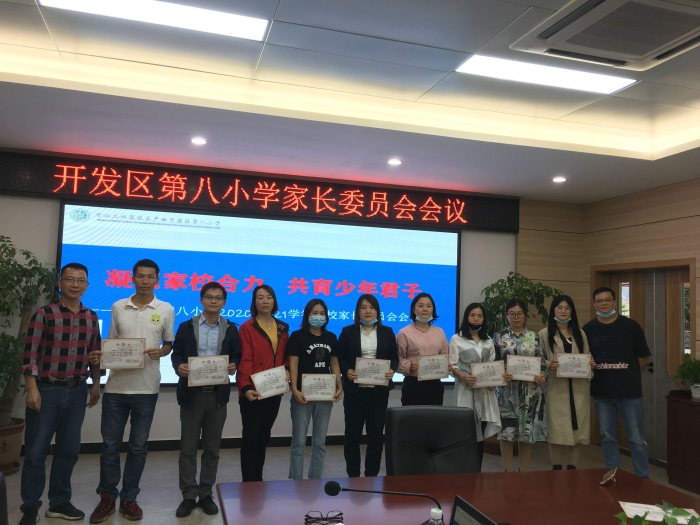 開發區第八小學2020-2021學年學校家委會會議于11月25日在學校116會議室勝利召開,學校董偉文副校長、學生服務室鄧龍主任和16位班級家長會主任一同參加,共商家校發展大計,共同為孩子健康成長助力。