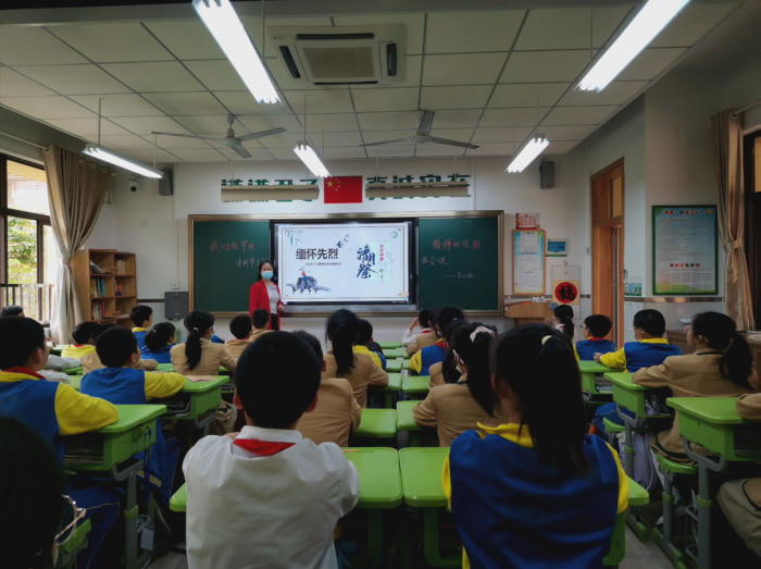 除此之外,少先隊員們還在級組長的帶領下參觀學校黨史學習教育基地,級組長對黨史學習教育基地中革命先驅的資料進行解讀和講解,號召隊員們珍惜現在的幸福生活,樹立報效祖國的遠大志向。