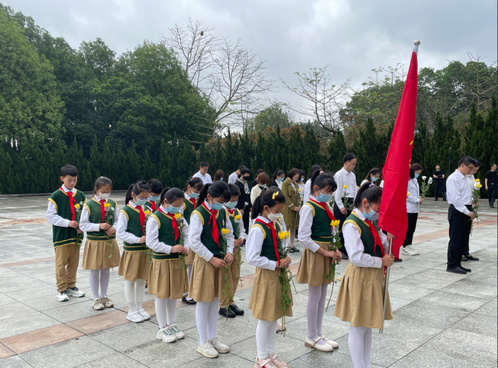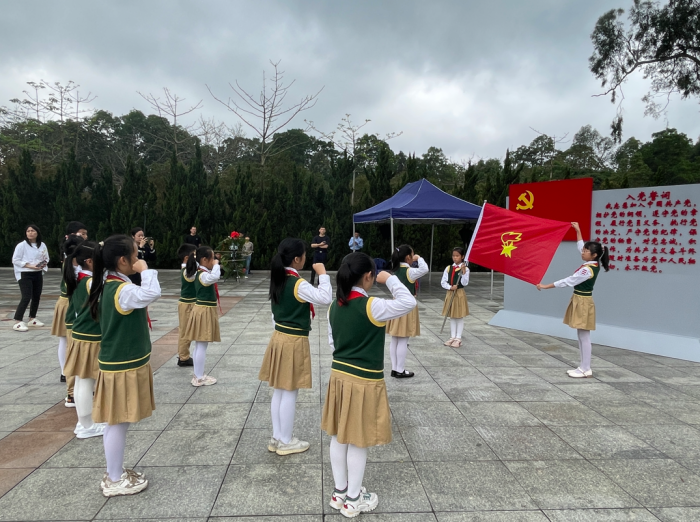 4月4日上午,火炬八小少先隊員代表們與學校黨員教師一起到中山革命烈士陵園開展清明節祭掃活動。現場莊嚴、肅穆,隊員代表們向烈士紀念碑默哀、獻鮮花,并繞紀念碑一周進行瞻仰,表達對先烈的崇高敬意。在黨員教師重溫入黨誓詞后,大隊委范思凝同學帶領全體隊員代表重溫入隊誓詞。堅定而響亮的誓詞聲在烈士陵園上空飄蕩,表達了少先隊員們傳承先烈精神,為中國夢不懈努力的決心。隨后,隊員們參觀中山史跡陳列館,了解中山革命歷史。在講解員的耐心講解下,一幅幅歷史的面孔鮮活了起來,一幀幀充滿硝煙的革命畫卷在隊員們面前展開。