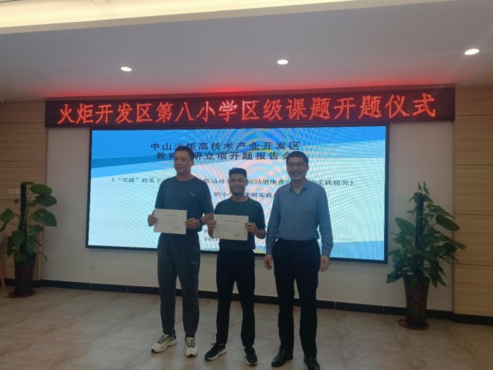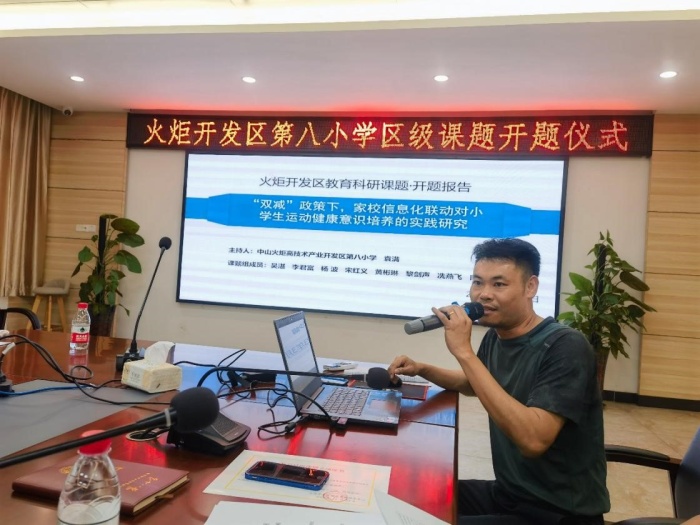 2023年3月24日下午,火炬開發區第八小學在116會議室舉行區級課題開題報告會。此次有兩個區級體育類課題開題,分別是李君富老師主持的《基于“單元化”的小學體育大課間實踐研究》和袁滿老師主持的《“雙減”政策下,家校信息化聯動對小學生運動健康意識培養的實踐研究》。