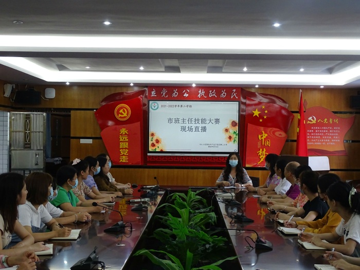 為了提高班主任的綜合能力,積累比賽經驗。2022年5月6日上午8時,開發區第二小學組織26位班主任齊聚在奮進樓會議室在線觀摩中山市第七屆班主任專業能力大賽,學校分管德育的馮麗芬副校長、黃桂芬主任全程參與本次培訓。