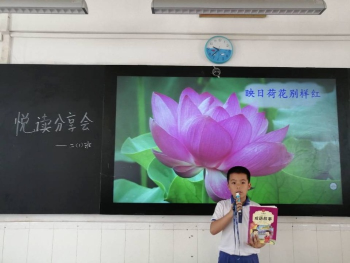 讀書節期間,學校開展了讀書漂流活動,各班語文老師將學生捐贈的圖書放在學校悅明軒圖書長廊供全校師生交流分享。四到六年級的學生還利用紅領巾校園廣播進行經典篇目的播報,一起分享閱讀的樂趣。在世界讀書日當天,孩子們與家長共讀一本經典好書,共建“書香家庭”。