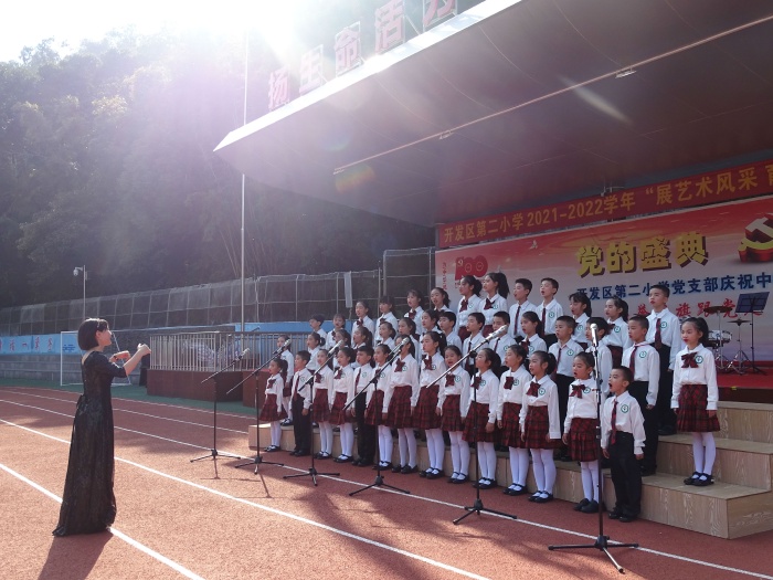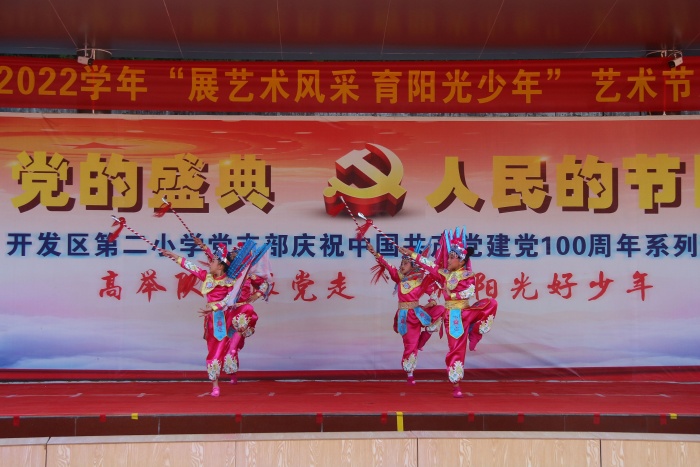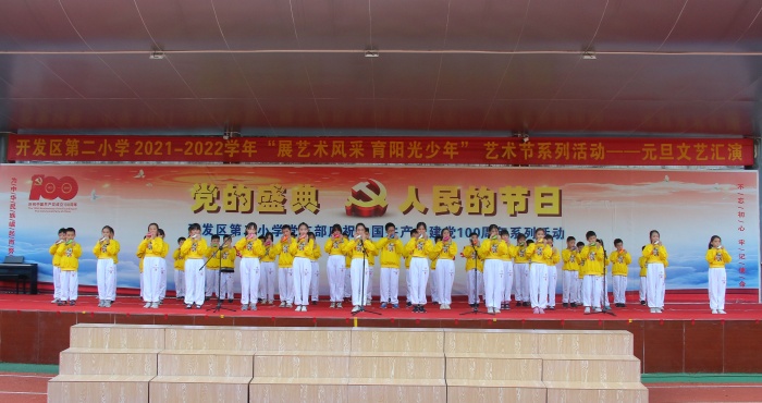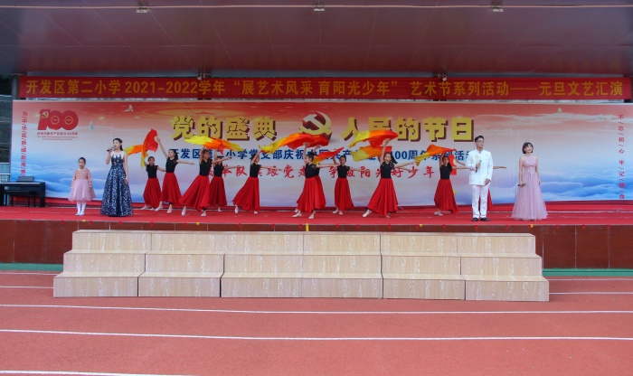 為迎接2022年新年的到來,弘揚健康向上的校園風貌,豐富校園文化生活,展現(xiàn)師生風采,提高學生的綜合素質,2021年12月31日下午開發(fā)區(qū)第二小學開展了以“展藝術風采,育陽光少年”為主題的藝術節(jié)系列活動暨元旦文藝匯演活動。