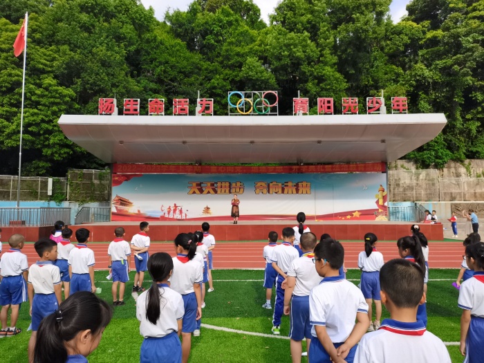 伴隨著雄壯的國(guó)歌聲,五星紅旗冉冉升起,全體師生肅立注目,開(kāi)學(xué)典禮拉開(kāi)了序幕。一年級(jí)新生代表及六年級(jí)學(xué)生代表分別發(fā)言,新生代表陳子文表達(dá)了自己作為小學(xué)生,對(duì)未來(lái)的美好期望和憧憬。六年級(jí)學(xué)生代表岳沛廷同學(xué)號(hào)召大家樹(shù)立遠(yuǎn)大目標(biāo),將把個(gè)人夢(mèng)想融入偉大的中國(guó)夢(mèng),為校爭(zhēng)光,為國(guó)爭(zhēng)光。