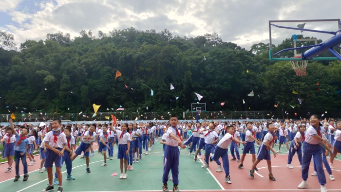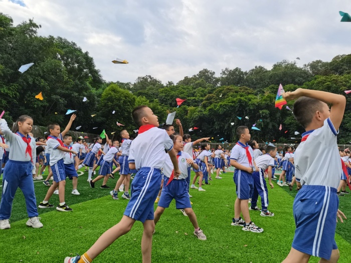 開(kāi)學(xué)典禮的最后一個(gè)環(huán)節(jié)是“放飛夢(mèng)想,向著快樂(lè)成長(zhǎng)出發(fā)”放飛紙飛機(jī)活動(dòng),在馮麗芬副校長(zhǎng)的帶領(lǐng)下,同學(xué)們?cè)凇疤焯爝M(jìn)步,奔向未來(lái)”的口號(hào)聲中,將寫(xiě)有新學(xué)期目標(biāo)的紙飛機(jī)放飛藍(lán)天,帶著美好的祝愿和希望開(kāi)啟新學(xué)期。