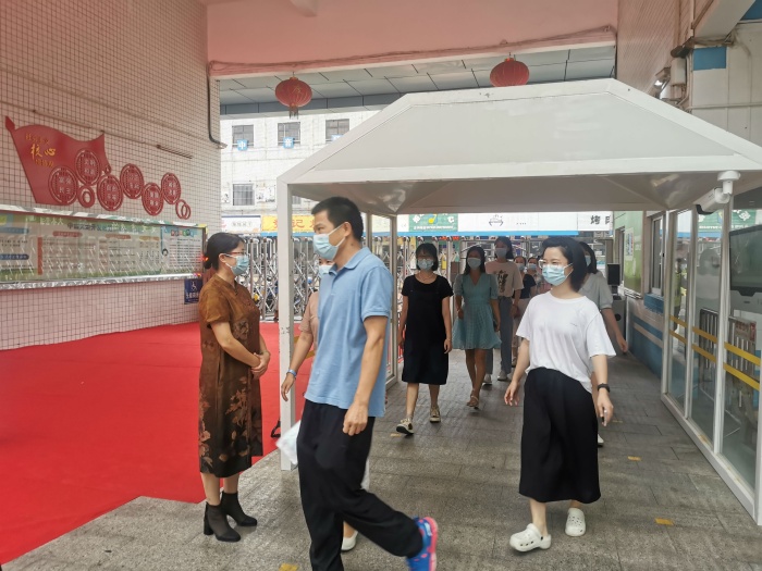 演練開始,由教師扮演學(xué)生每人間隔一米,有序排隊(duì),逐個(gè)進(jìn)行入校體溫檢測(cè)。值日行政人員、教師和門衛(wèi)組成護(hù)導(dǎo)隊(duì),提醒學(xué)生保持安全距離,并對(duì)學(xué)生的體溫進(jìn)行測(cè)量、登記。體溫異常學(xué)生在值日行政人員的帶領(lǐng)下前往觀察區(qū)和隔離區(qū)。隨即校醫(yī)對(duì)學(xué)生進(jìn)行近14天旅居史調(diào)查詢問、體溫復(fù)測(cè)和初步診斷,做好記錄后,通知家長(zhǎng)來接,由其家長(zhǎng)按要求及時(shí)把該學(xué)生送到定點(diǎn)醫(yī)院并按照醫(yī)療機(jī)構(gòu)指引進(jìn)行處理。