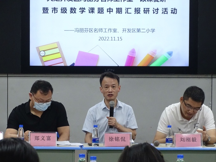 “教而不研則淺,研而不教則空。”教育要發展,科研必先行。為進一步推進教育科研工作,理清研究思路,保證課題研究的順利推進,2022年11月15日上午,火炬開發區馮麗芬名師工作室“以課促研”暨市級數學課題中期匯報研討活動在開發區第二小學綜合電教室隆重舉行。省名師、正高級教師徐銘侃校長、鄭義富校長,區教育事務指導中心教研部劉剛毅校長擔任本次中期匯報的指導專家,出席本次活動的領導有開發區教育事務指導中心張立超副校長、開發區第二小學周瑞珍校長。此外,出席本次活動的還有課題組成員、馮麗芬工作室成員、開發區兄弟學校的部分數學老師以及開發區第二小學全體數學老師。