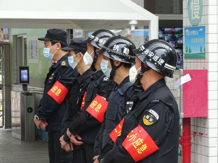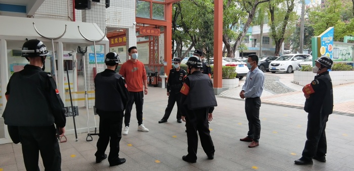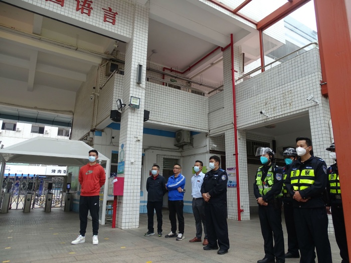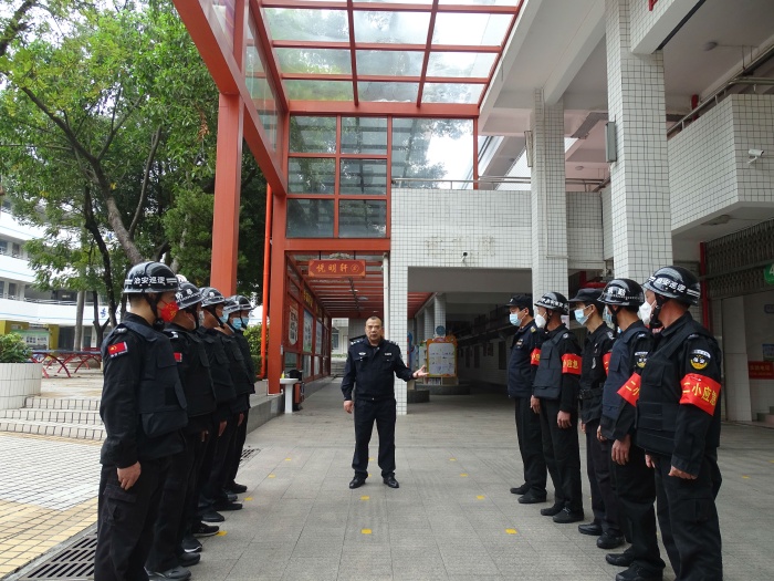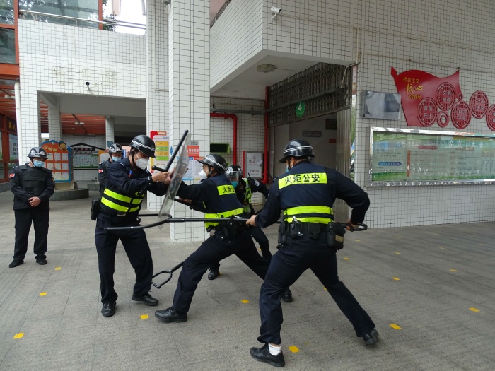 參加本次演練活動的主要人員有:張家邊派出所民警、學校保安人員、學校護校隊成員。活動開始,鄭康樂副校長與朱亮副主任首先代表學校對肖友良警官等一行人表示了歡迎與感謝。肖友良警官一行與學校安全負責人進行了深入的校園安全工作交流,并提醒相關注意事項,肖友良警官表示會全力支持校園安全相關工作。
