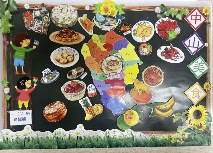 一張張栩栩如生的手抄報,呈現了多彩多樣的閱讀成果,有的是介紹美食的制作步驟,有的是介紹美食的歷史和地位。更有創意的是,有的同學制出了一份中山美食區域劃分圖,大家可以根據這份清單去打卡品嘗。