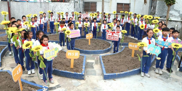 同時向學生講述了選擇種植向日葵花的意義:向日葵姿態挺拔,氣勢高昂,永遠保持著一種樂觀、進取的姿態;它具有向陽性,每天不停地圍著太陽進行轉動,對太陽始終忠誠,這是一種態度,一種精神,是一種信仰;無論風吹雨打,無論嚴寒酷熱,它始終不停步、不放棄,一直全力生長。它用最堅韌的精神,抒寫最偉大的夢想;用最努力的進取,踐行最純粹的忠誠,用全身心的奉獻,無私回饋社會。向日葵的這種精神品質,值得二小的每一位少年用心去體會,用行動去踐行。