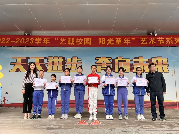 伴隨著三4班孩子們的詩歌朗誦《我是一株向日葵》,本屆讀書節拉開了帷幕。首先進行的是頒獎儀式,由馮麗芬校長和鄭康樂副校長為在學科競賽中獲獎的學生頒發獎狀。接過來之不易的獎狀,孩子們的臉上洋溢著幸福的笑容。緊接著,四1班的孩子們飽含深情地送上《讀中國》,鏗鏘有力的聲音傳遞著新時代少年的愛國情懷。五4班的詩朗誦《中國好少年》更是把開幕式推向了高潮,稚嫩卻堅定的童聲抒發了中國少年熱愛祖國、報效祖國的強烈情感。