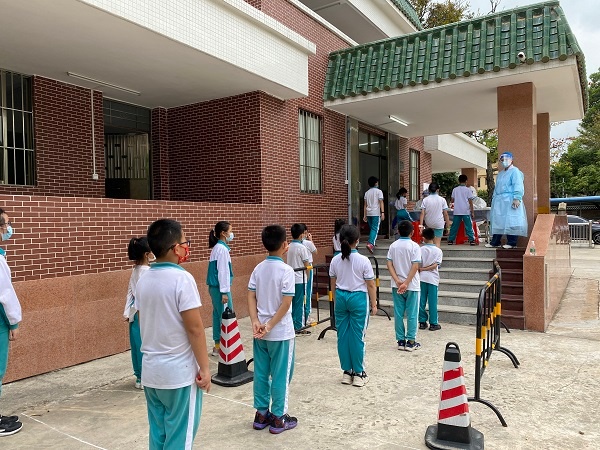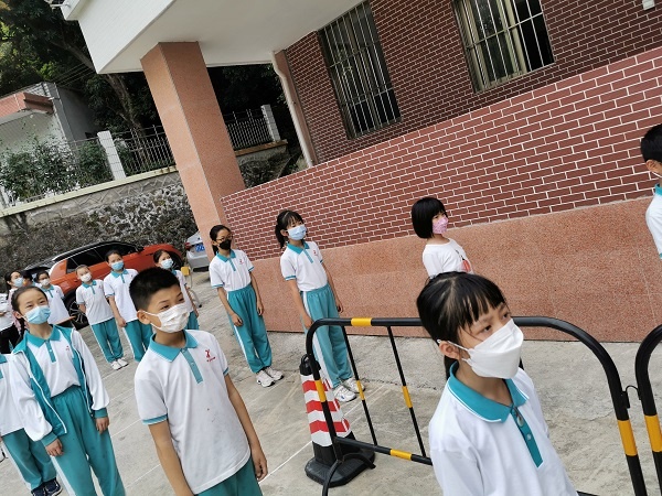 15時(shí),中山利誠門診部的醫(yī)護(hù)人員到達(dá)學(xué)校,在校友堂門前進(jìn)行核酸采樣。在醫(yī)護(hù)人員及學(xué)校教師的相互配合下,采樣工作有條不紊地進(jìn)行。各班學(xué)生在班主任的帶領(lǐng)下,按照廣播指引,迅速集隊(duì),安靜、有序地到達(dá)采樣地點(diǎn)。期間,全體師生佩戴口罩,保持一米間距。到達(dá)采樣地點(diǎn)后,班主任逐一出示學(xué)生葵花碼,待工作人員核驗(yàn)后,學(xué)生再進(jìn)行采樣。下午16時(shí)40分,經(jīng)過一個(gè)多小時(shí)的努力,開發(fā)區(qū)六小431人完成了采樣。
