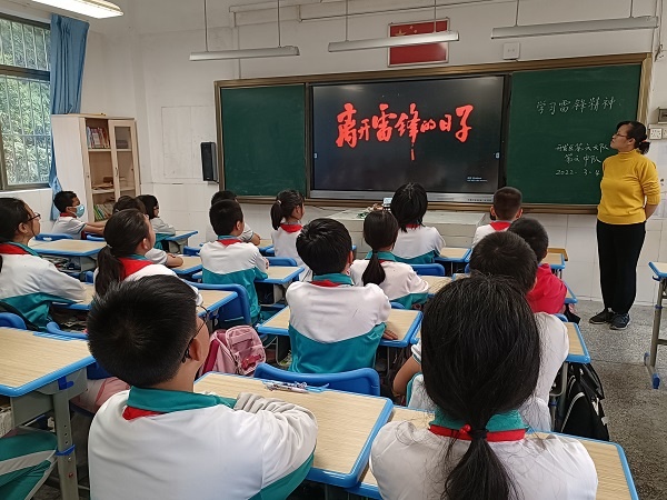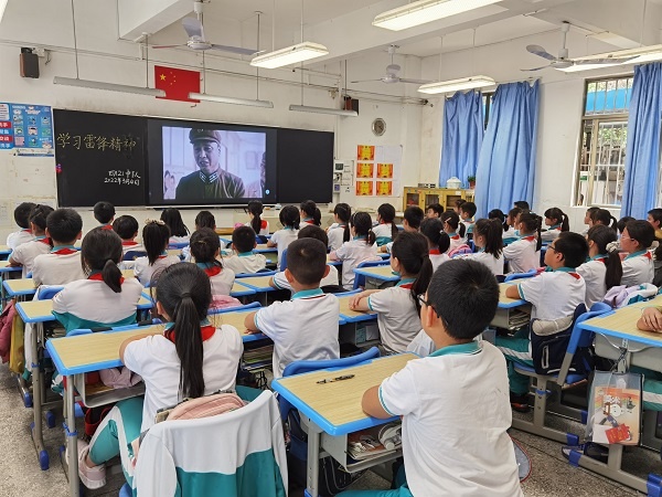 班主任老師在學習強國平臺給學生播放影片——《離開雷鋒的日子》,讓學生重溫雷鋒精神。該影片重點講述雷鋒的戰友喬安山以雷鋒為榜樣,全心全意為人民服務的故事。