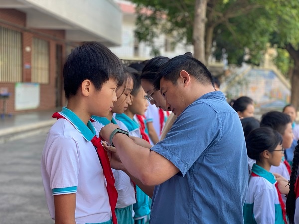 隊員們穿著整齊的校服,胸前佩戴著鮮艷的紅領(lǐng)巾,精神抖擻地上臺接受表彰。徐錫洪校長等學(xué)校領(lǐng)導(dǎo)為優(yōu)秀的少先隊員佩戴紅領(lǐng)巾獎?wù)拢幻睹丢務(wù)略陉爢T們的胸前熠熠生輝。獲獎的少先隊員們承諾:在未來的日子里不斷進取,樹立遠大理想,學(xué)習(xí)新知識、培養(yǎng)好習(xí)慣,努力為胸前的紅領(lǐng)巾增添新時代的光榮!