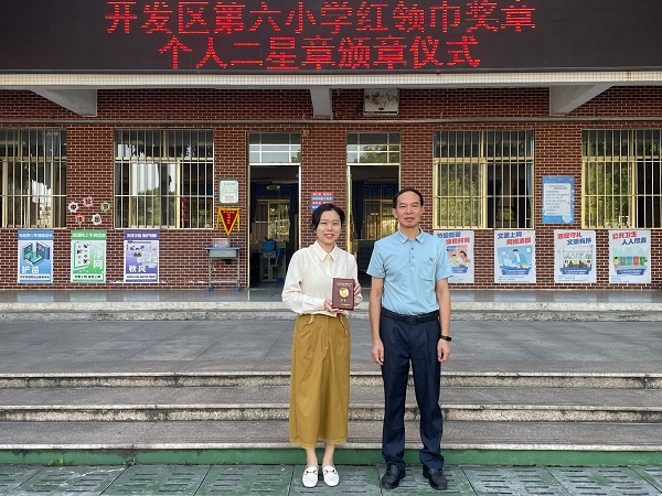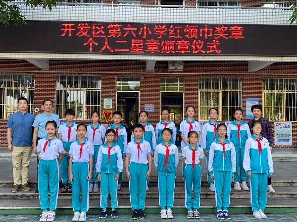為深入學(xué)習(xí)貫徹習(xí)近平總書記關(guān)于少年兒童和少先隊工作的重要論述,貫徹落實《中共中央關(guān)于全面加強新時代少先隊工作的意見》精神,健全少先隊榮譽表彰機制,持續(xù)激發(fā)少先隊員光榮感,2022年10月26日早上,開發(fā)區(qū)第六小學(xué)舉行了2021—2022年度“紅領(lǐng)巾獎?wù)隆倍钦骂C章儀式。