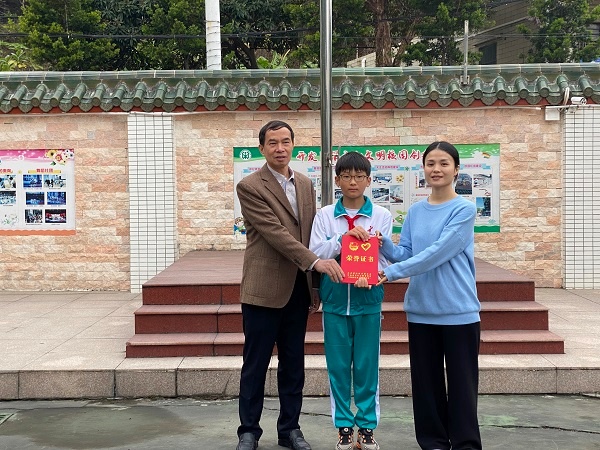 接著是“優秀紅領巾親子義工家庭”頒獎儀式。該校王諾晨親子義工家庭被評為“中山市優秀紅領巾親子義工家庭”。多年來,諾晨和媽媽積極參加學校的志愿服務活動,在創文、防疫、助老助困、校運會等志愿活動中做出了突出貢獻。諾晨媽媽在2020至2022年2年間,投身到社區抗疫志愿活動中,幾乎每一場核酸檢測現場都能看到她忙碌的身影,從嚴寒到酷暑,她始終堅守在疫情防控第一線。王諾晨親子義工家庭獲得“中山市優秀紅領巾親子義工家庭”稱號實至名歸,他們的奉獻精神也感染著身邊的每一個人。