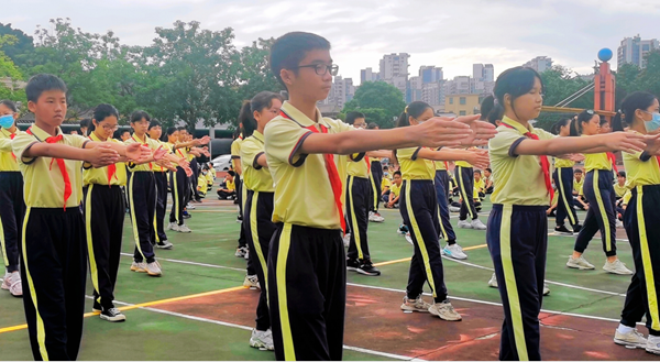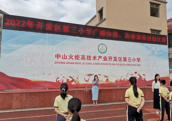 為豐富校園文化生活,落實“五項管理”,增強學生身體素質,提高學生廣播體操和跆拳道操的質量,培養學生集體意識,增強班級榮譽感和凝聚力,發揚團結友愛、奮發向上的體育精神,2022年5月17、18、19日上午,火炬開發區第三小學利用大課間舉行了校園廣播操、跆拳道操比賽,比賽內容包括:進場、做操、退場三部分。