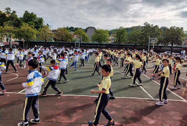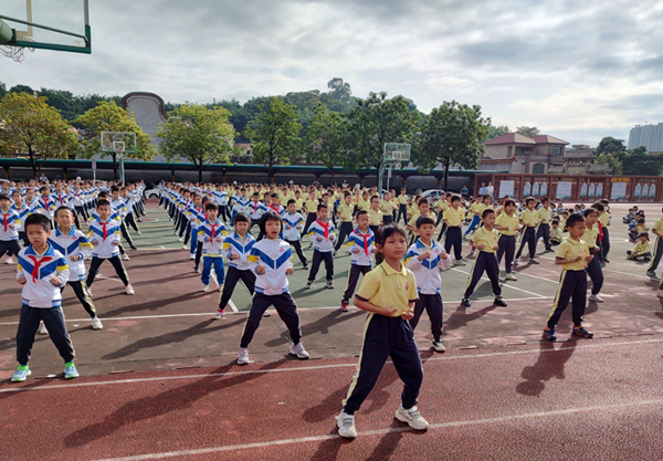 賽前,各班充分利用課間廣播操、體育課的時間,讓每一位學生掌握動作要領,節奏和力度要求。