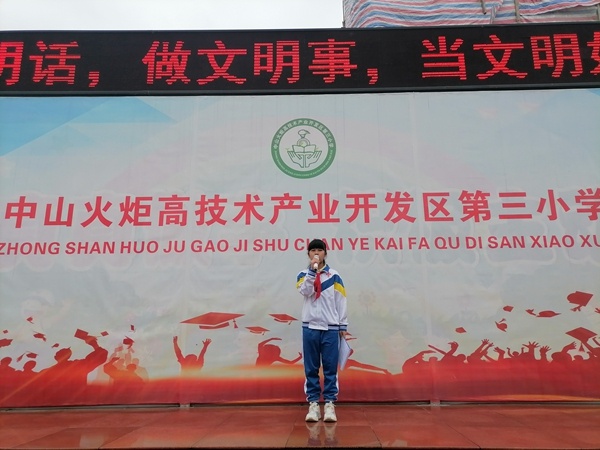 最后,由大隊長聶杰琳向全體隊員作了倡議發言。她列舉了校園中存在的不文明現象;呼吁同學們要做文明之人,行文明之事;要努力做到舉止得體、言行文明、品德高尚、尊敬師長、團結同學;從自己做起,從身邊小事做起,用自我行動帶動身邊的人,引領文明社會風氣,爭做新時代文明好少年!