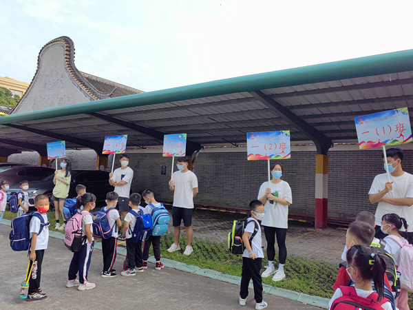 時間過得飛快,結束一上午的新生常規培訓,家長們井然有序地在接送點排隊,小朋友們在班主任老師的帶領下也排著整齊的隊伍向爸爸媽媽們走來。