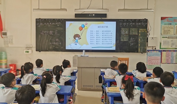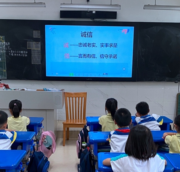 活動中,輔導(dǎo)員們通過游戲互動,以充滿樂趣的“信”字猜謎游戲,向隊(duì)員們拋出了活動的“誠信”主題,引起了隊(duì)員們對于“誠信”問題的思考與重視。從道德、法律和政治等層面對誠信有了更深入認(rèn)識,也讓隊(duì)員們進(jìn)一步樹立起誠信的意識和品行。輔導(dǎo)員們精心的設(shè)計(jì),除了上述猜字游戲,還通過講誠信故事、名人名言、誠信守則、聯(lián)系生活實(shí)際等形式,幫助隊(duì)員理解誠信的深刻內(nèi)涵和重要意義;引導(dǎo)隊(duì)員傳承中華民族尚廉崇潔誠信的優(yōu)良傳統(tǒng),將誠信作為基本道德準(zhǔn)則,養(yǎng)成誠信的良好習(xí)慣,從小事做起,自覺做誠實(shí)守信、敢于擔(dān)當(dāng)?shù)暮蒙倌辍?/p>