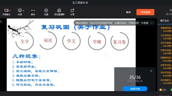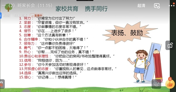 家長(zhǎng)們紛紛表示,通過(guò)學(xué)校組織的此次線(xiàn)上家長(zhǎng)會(huì)解決了許多在孩子教育問(wèn)題上的困惑,在這特殊的疫情時(shí)期讓家長(zhǎng)們更了解孩子們?cè)谛5膶W(xué)習(xí)情況,陪伴他們一起快樂(lè)成長(zhǎng)。