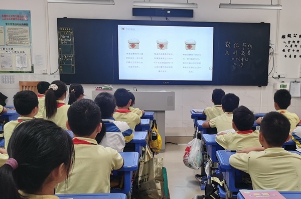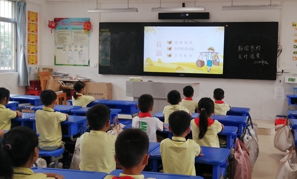 各中隊召開了“厲行節約、反對浪費”主題隊課。隊員們聽節約小故事,誦讀勤儉名言警句,輔導員向隊員們講解了鋪張浪費的危害,提倡“厲行節約、反對浪費”的社會風尚,宣傳餐桌文明知識,鼓勵學生們杜絕舌尖上的浪費,從而讓隊員們深入地理解珍惜糧食的重要性。