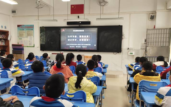隨后,各中隊召開了“銘記歷史 珍愛和平 發展才能強大”主題隊課,輔導員帶領少先隊員們一起回顧南京大屠殺的歷史背景、國家公祭日的由來,以及中國人民在維護世界和平方面作出的巨大貢獻。輔導員以黨的二十大精神為指引,號召隊員們能夠以史為鑒,珍惜現在的和平與幸福的生活,刻苦學習,長大以后為國做貢獻。