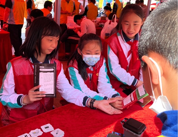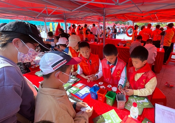 現場氣氛活躍,火炬三小的紅領巾宣講團攤位,特色十足,垃圾分類展板、學習強國標語醒目,吸引大批市民駐足。參加垃圾分類闖關小游戲和現場搜索學習強國節目大闖關趣味活動的市民絡繹不絕,小志愿者們認真引導,忙得不亦樂乎。小小志愿者們還拿著垃圾分類的宣傳單走到攤位外面,走到人群中進行派發和宣傳。