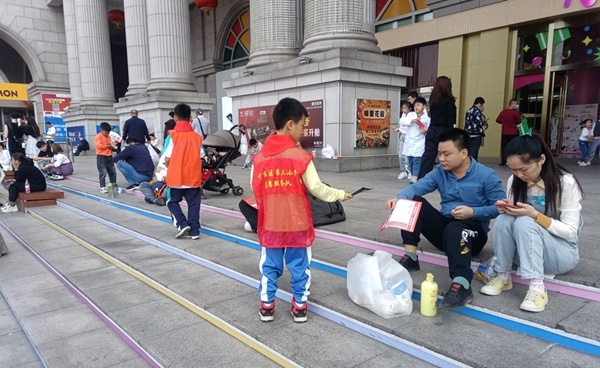 參加本次活動的志愿者來自二(2)班、三(4)班、四(2)班和四(4)班,超過20對親子義工家庭。活動內容包括垃圾分類宣傳,學習強國APP的使用推廣,爭創全國文明典范城市宣傳,愛心義賣等,既鍛煉學生積極交往、與人合作的能力,同時培養孩子們奉獻愛心、助人為樂的志愿服務意識。