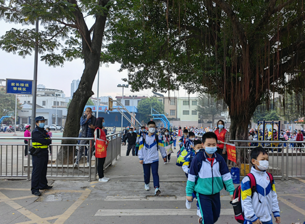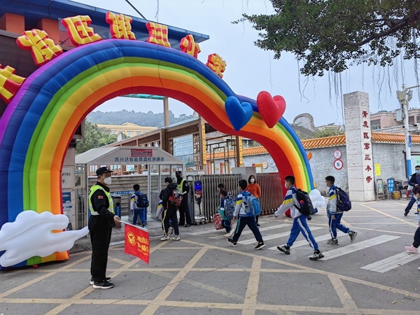 一大早,三小的老師們就守候在校門口,迎接學(xué)子們的歸來。社區(qū)民警和身穿紅色馬甲家長志愿者們守護(hù)學(xué)生入校安全,入校秩序規(guī)范有序。