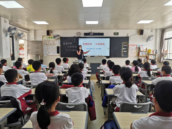 大手拉小手,防疫一起走。班會課上,老師還強調家校合作齊心防疫,倡議全體學生和家長非必要不出市。如必要外出,不前往中高風險地區,返回中山要做核酸檢測,三天兩檢,并做好自我健康監測。另外,暫停清明現場祭掃活動,倡議“云祭掃”緬懷先人。
