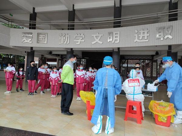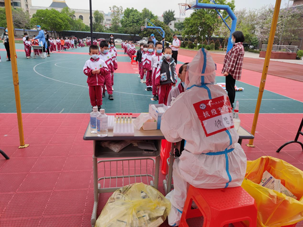 為進一步落實上級領導部門的疫情防控措施,落實疫情期間防控主體責任,保障全校師生的身體健康和生命安全,火炬區第四小學全力配合火炬區開展的全員大規模核酸檢測工作,于3月29日開展第二輪全體在校學生、教職工核酸檢測工作。此次全校全員核酸檢測工作于13:10開始,15:45結束,順利有序完成。