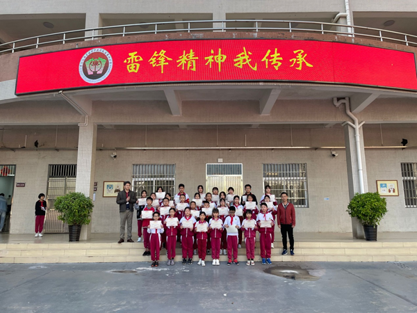升旗儀式后,少先隊員代表魏可兒在國旗下講話,帶領同學們重溫雷鋒事跡和精神。接著,少先隊輔導員黃倩霞老師進行發言。她提到:希望同學們在以后的學習生活中,將樂于助人、無私奉獻的雷鋒精神付諸于行動。在“學雷鋒”活動月的啟動儀式上,一批積極踏實、無私奉獻的優秀少先隊員值日隊干受到了表彰。黃老師表揚他們在值日過程中吃苦耐勞、認真負責,發揮了模范帶頭作用。會后,學生紛紛表示,要向榜樣學習,積極奉獻。活動最后,學校楊勇強副校長發表了寄語,他強調:疫情防控中有很多默默奉獻的志愿者,為控制疫情保駕護航,希望同學們注意疫情防控及預防流感,保護好身體,在生活中多做好事,為生活添光彩。